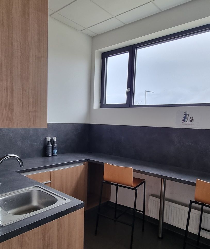Pow. biurowo-socjalna - wykończona w bardzo dobrym standardzie - klimatyzacja, na podłodze gresy , okna aluminiowe, pom.socjalne całkowicie wyposażone.